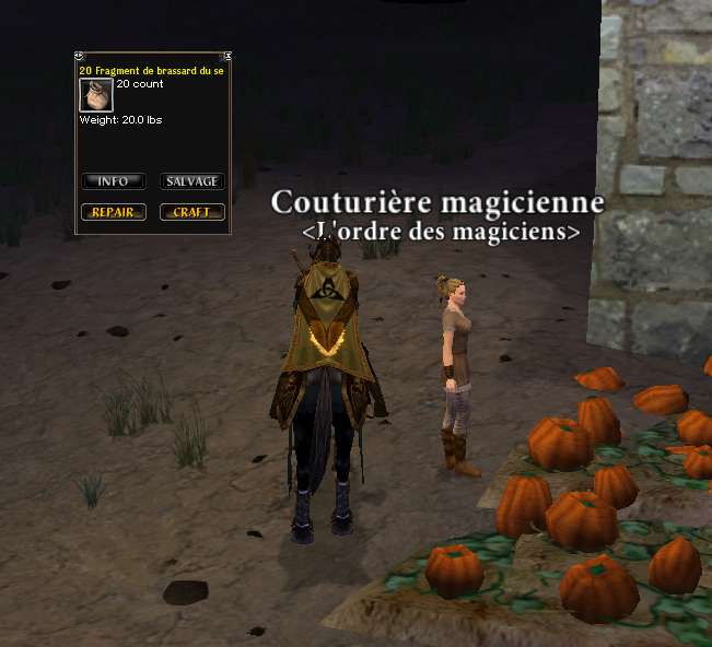 On ne peut pas échanger les "fragments de brassards du serviteur" en allant voir "Couturière magicienne" à Lindon Family.